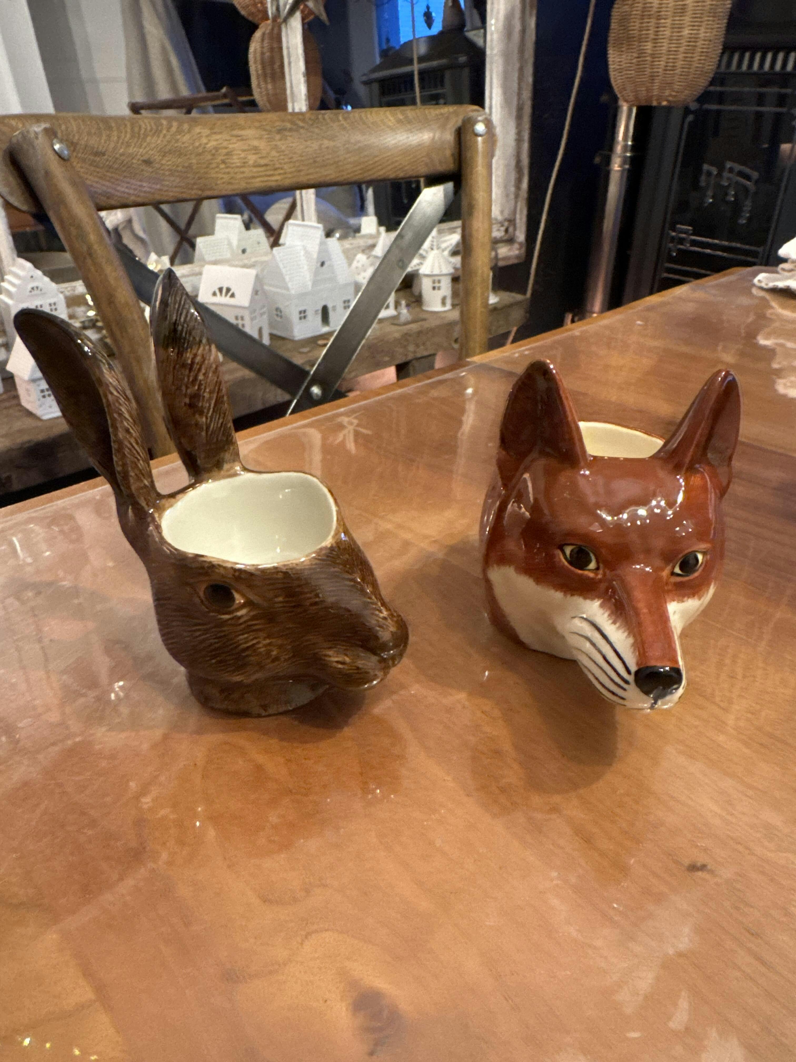 A delightful hand-painted stoneware hare head egg cup – perfect for any hare or rabbit enthusiast.