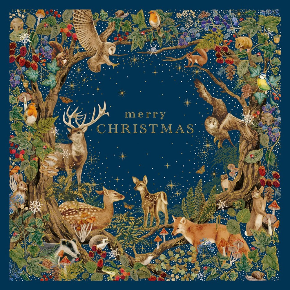 These elegant cards are perfect for those wanting to send a higher quality Christmas card. This box contains 8 luxury Christmas cards that feature wildlife standing in a moonlit starry forest.