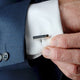 Looking for a unique way to mark a unique wedding day? These stunning personalised wedding cufflinks are the ideal gift for the groom on his wedding day. With a highly polished silver cuboid shape and rose gold tip detail they will look stunning on the big day against a dark suit, and he's sure to love wearing them in the future.