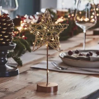 Make a big statement this Christmas with our glittering Gold Table Star adorned with warm white LED lights. This star-shaped table decoration will bring Christmas cheer to your family gathering with its exquisite golden glow and festive detail. Add some sparkle and joy to your Christmas table!