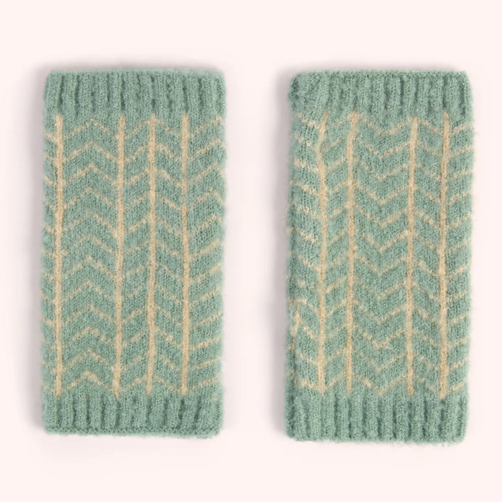 Cute pair of baby blue wrist warmers with cream detailing to keep your hands toasty warm this Winter, whilst leaving your fingers free!